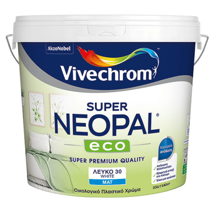 SUPER NEOPAL ECO – Bojë Plastike ekologjike mat me cilësi super premium për përdorim të brendshëm. E çertifikuar nga AFNOR dhe plotëson kriteret e Bordit Eko-Etiketë të Bashkimit Europian.